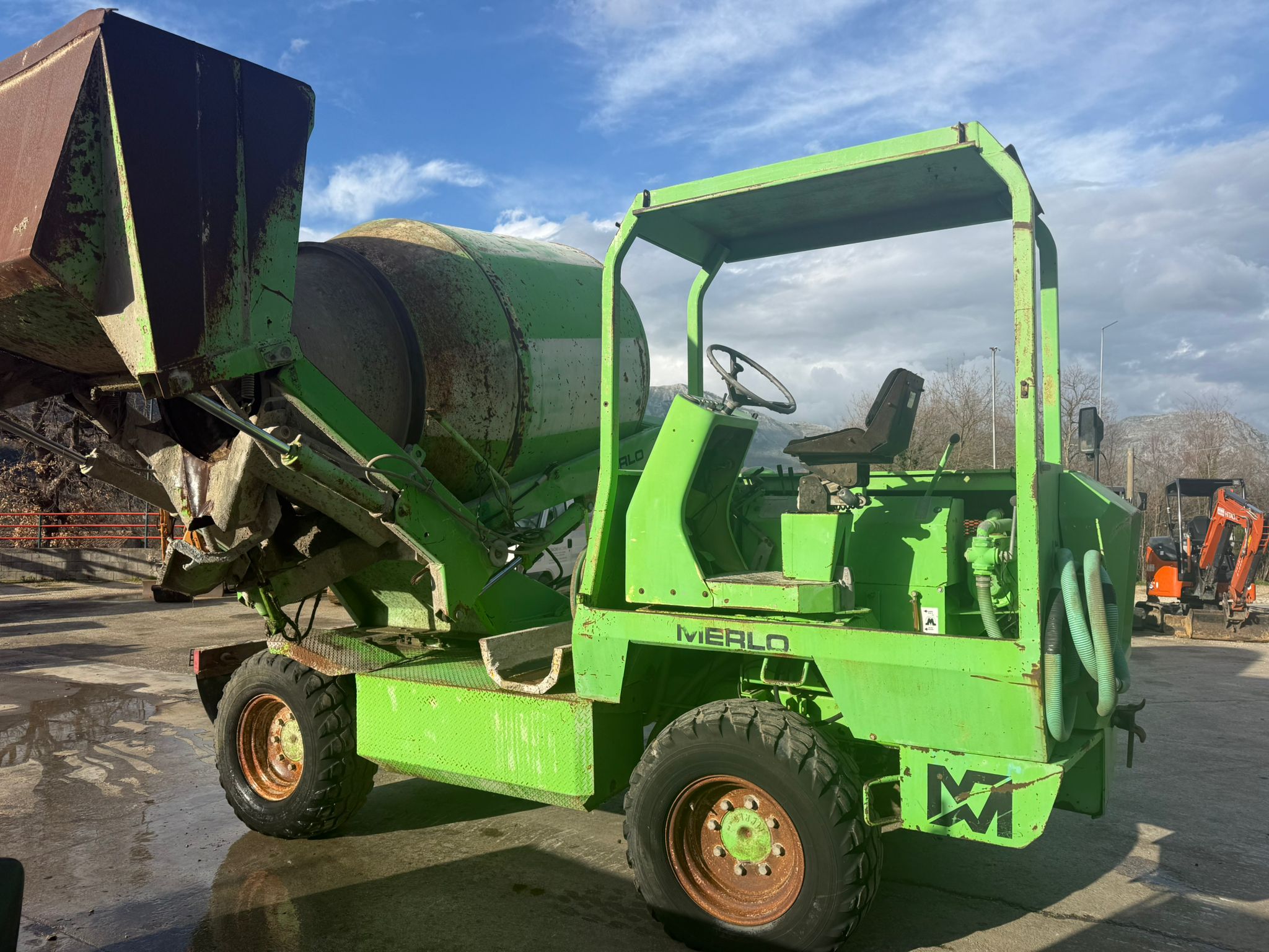 Autobetoniera DBM MERLO 3000 con 4 ruote sterzanti, idrostatica, 4 freni a disco, 4 ruote motrici, vasca rotante e in ottime condizioni. 2000 ore di utilizzo.